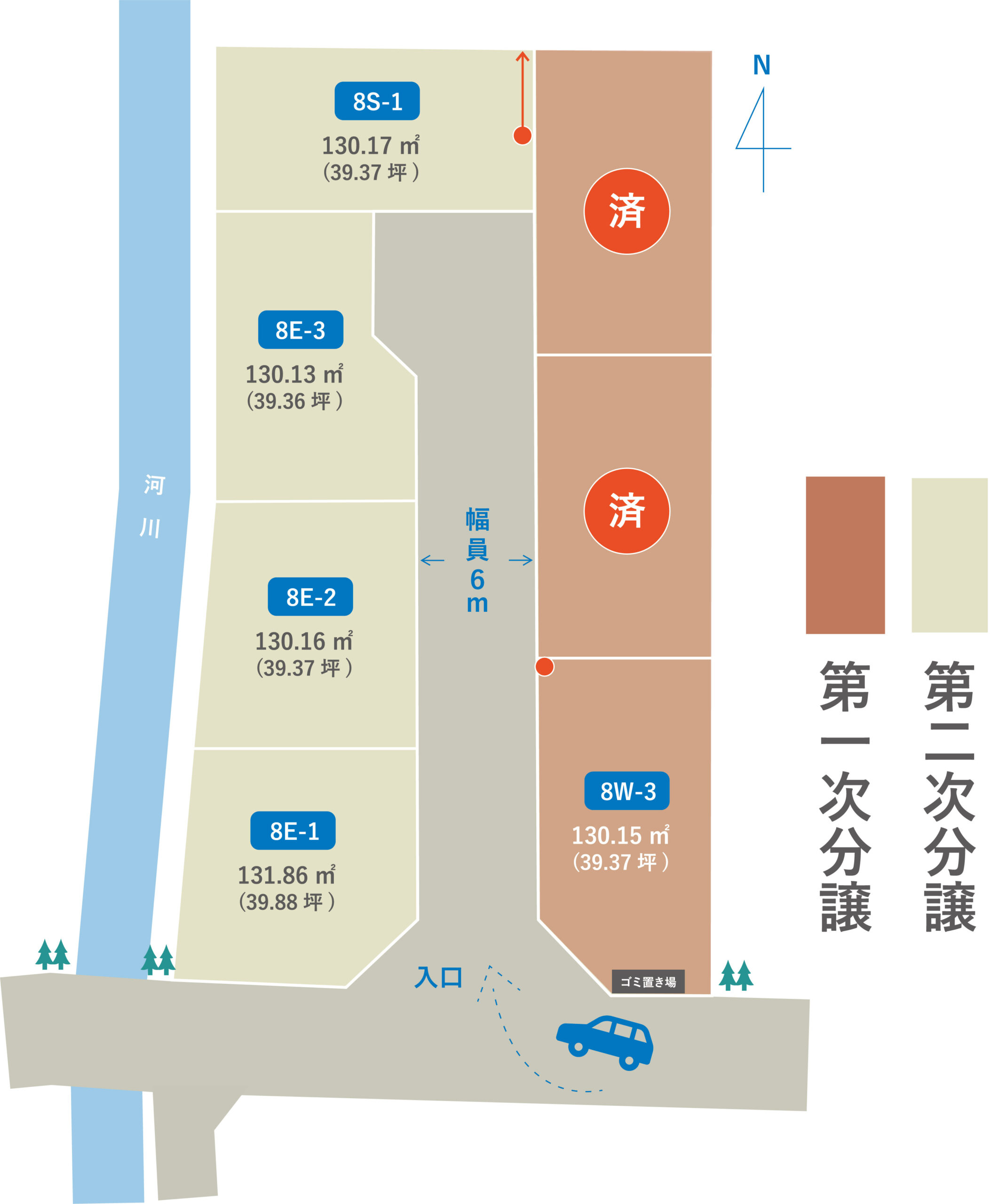 | 区画 | 敷地面積 | 坪数 | 販売価格 | 備考 | |