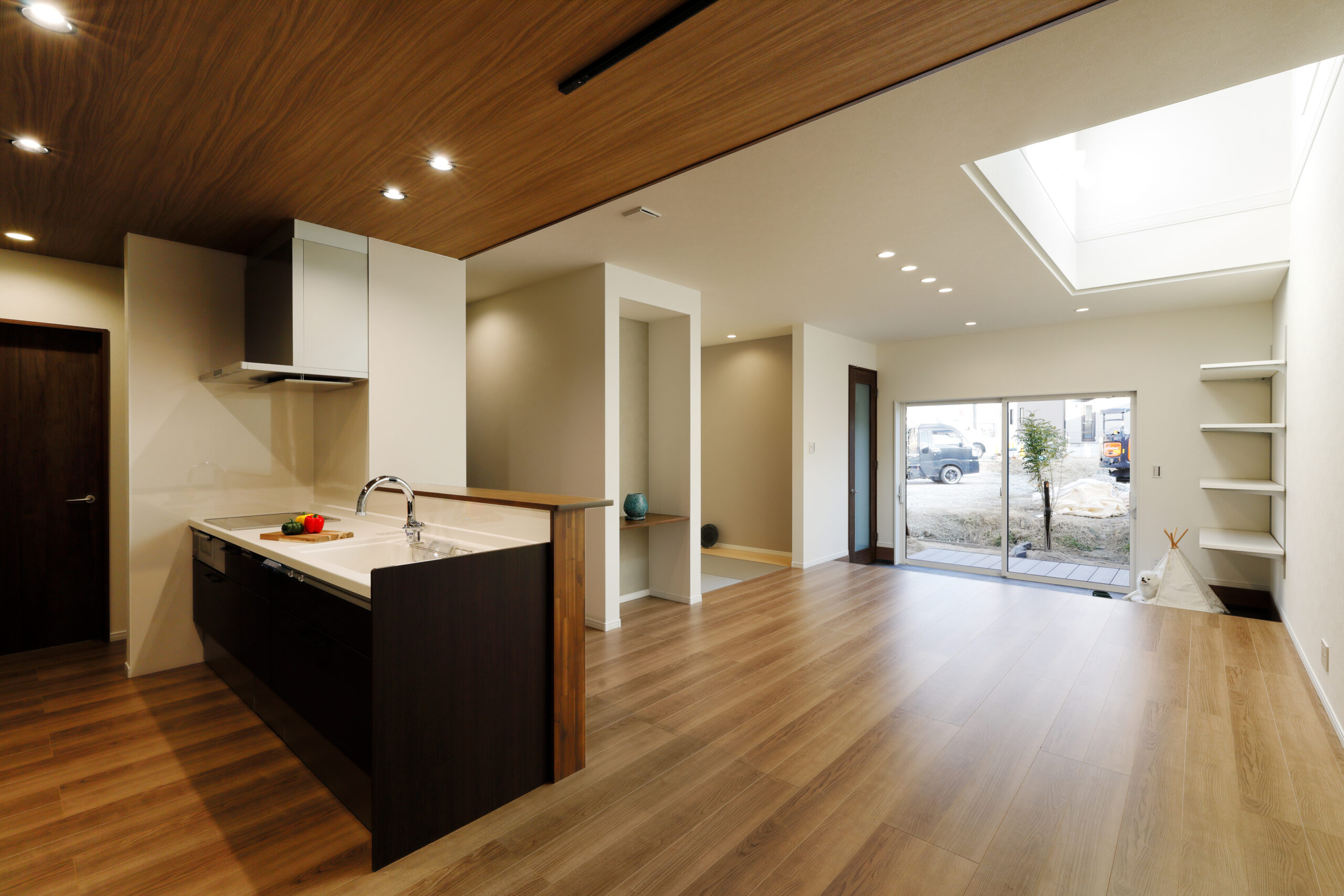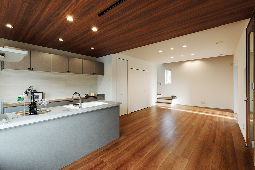LDKはオープンスタイルのキッチンを囲んで過ごせる19畳の広々大空間